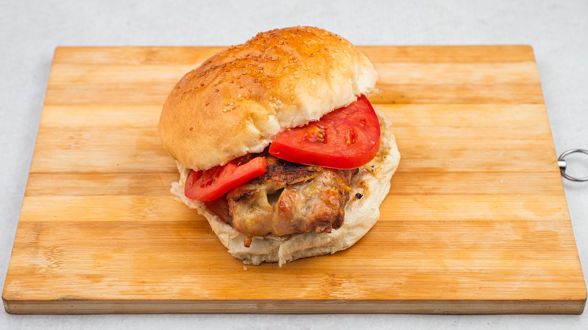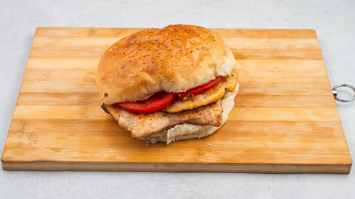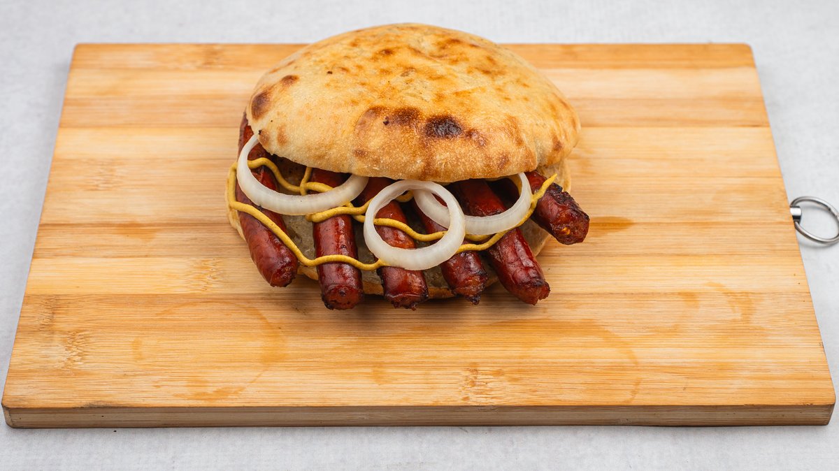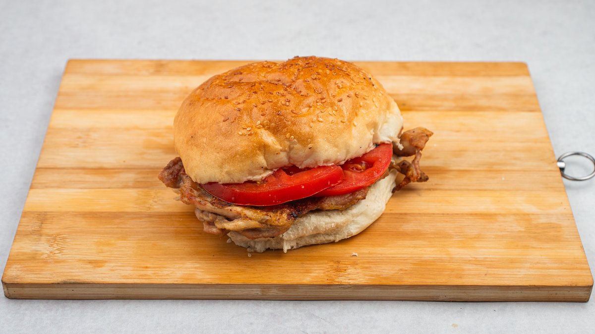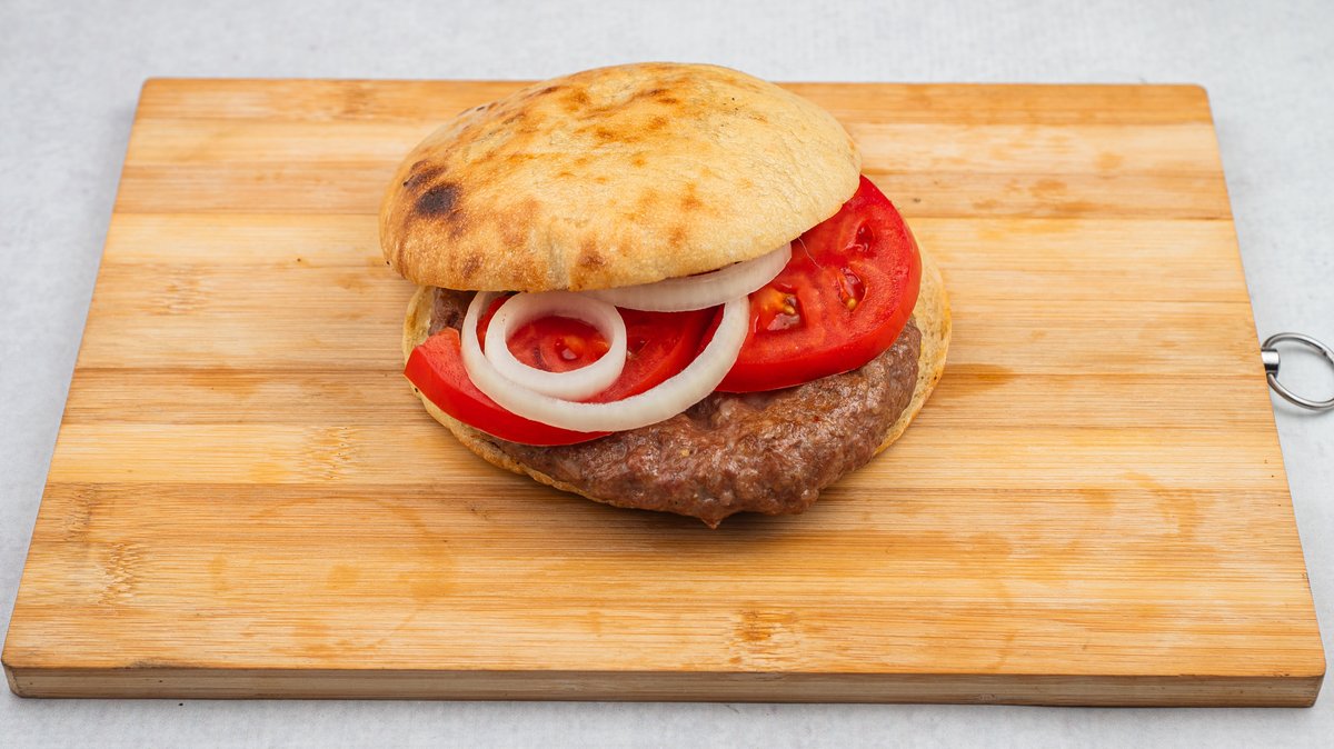 Pljeskavica umešana sa kačkavaljem, domaćom dimljenom slaninicom, domaćim dimljenim suvim mesom, crnim lukom i tucanom ljutom paprikom