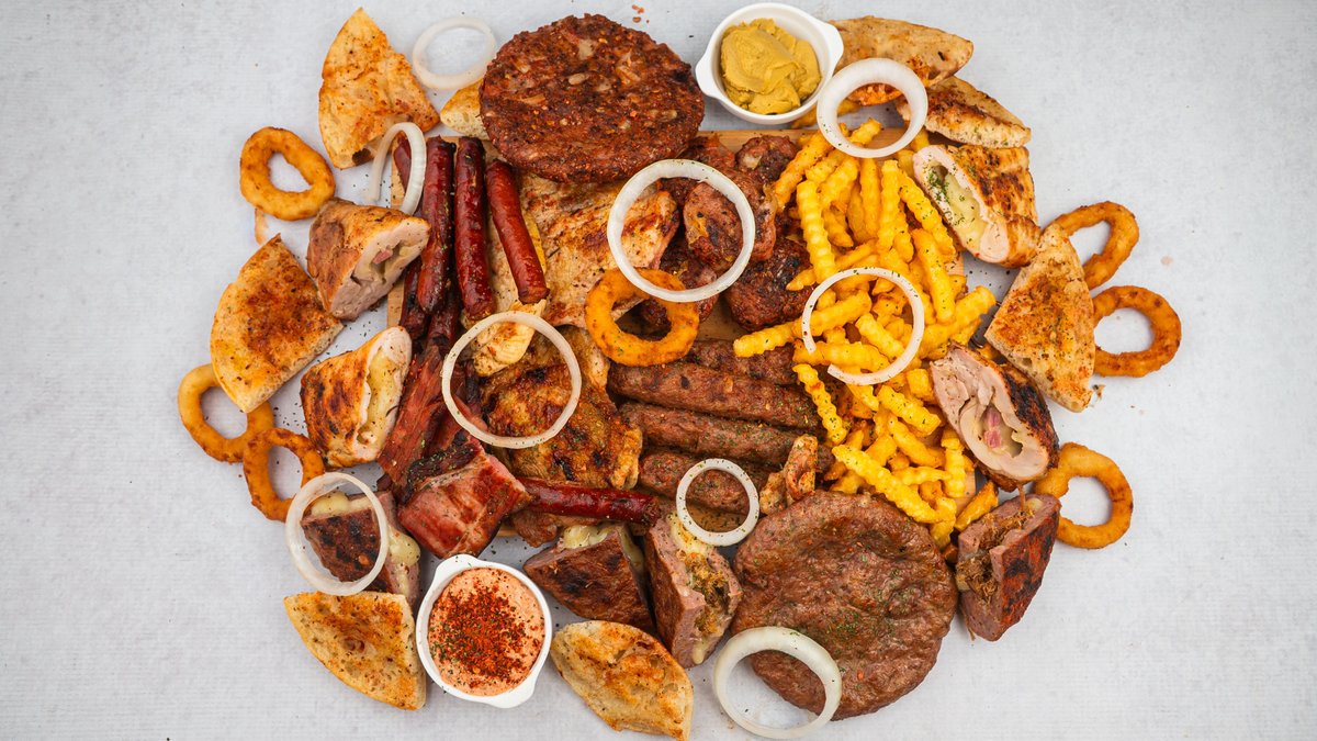 500g ćevapa, 500g uštipaka, 500g pilećeg filea, 500g pilećeg bataka, 500g kobasica, 500g slanine, 800g pomfrita, 8 lepinja, kupus, luk, urnebes, 2l Pepsi