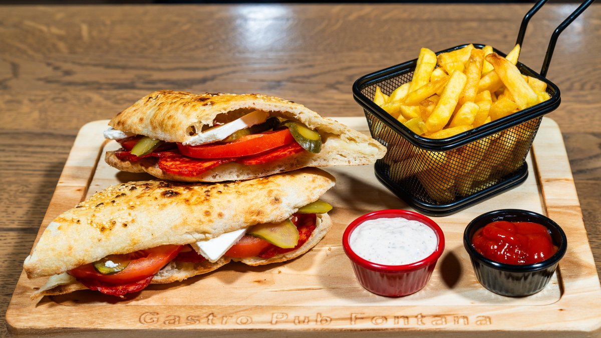Cotto šunka, mocarela, ajzberg, paradajz, pavlaka, majonez