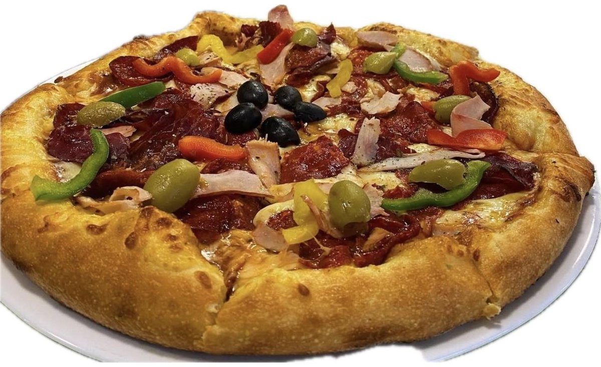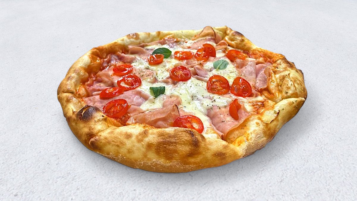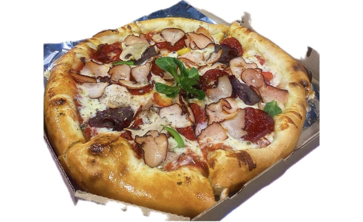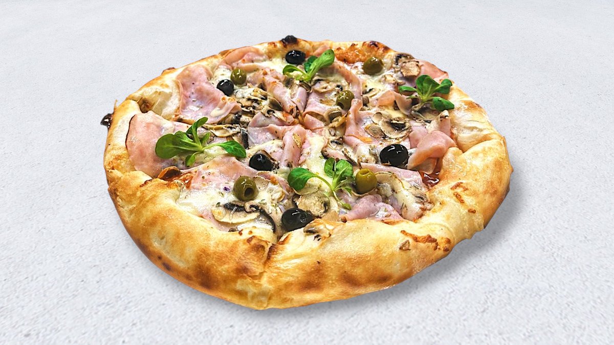 Sos od paradajza, pečurke, šunka po izboru (svinjska/pileća), mocarela, origano, masine