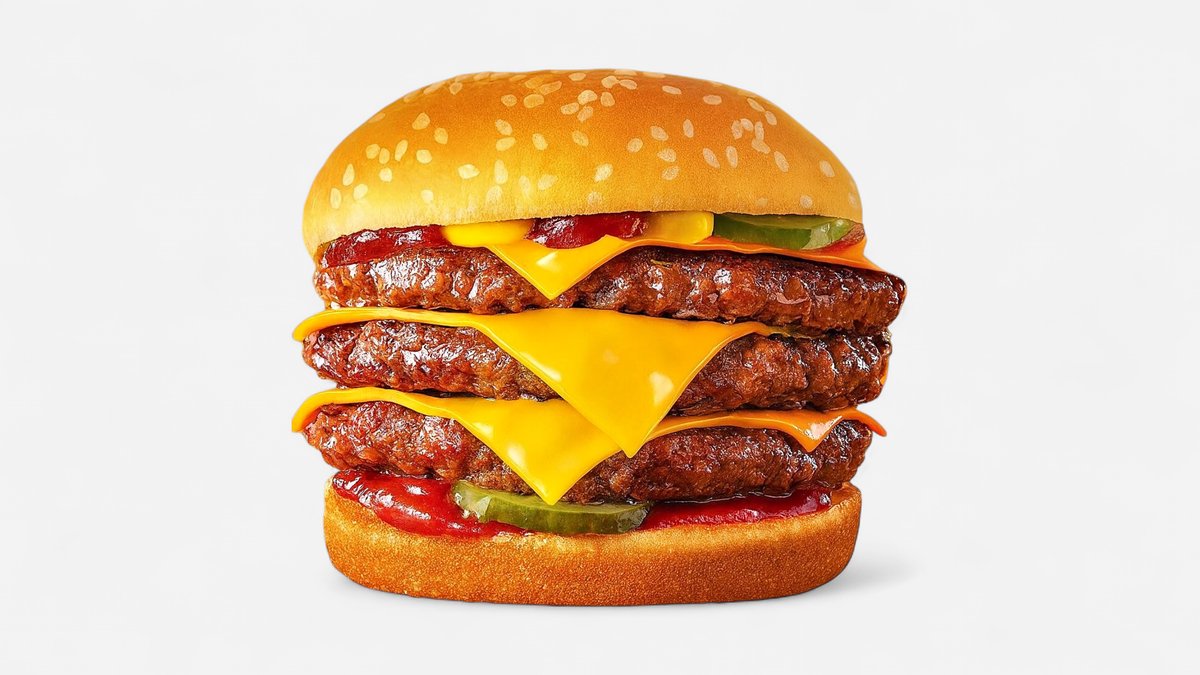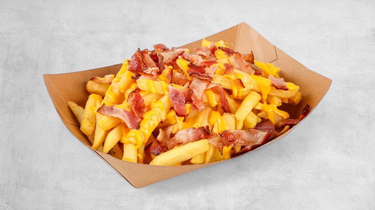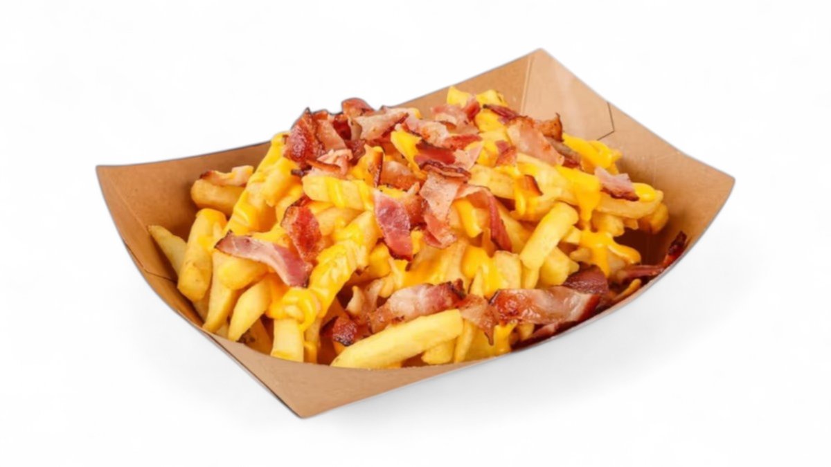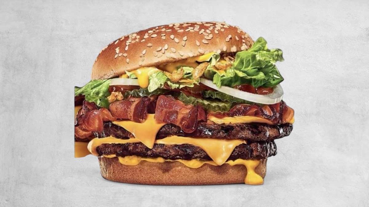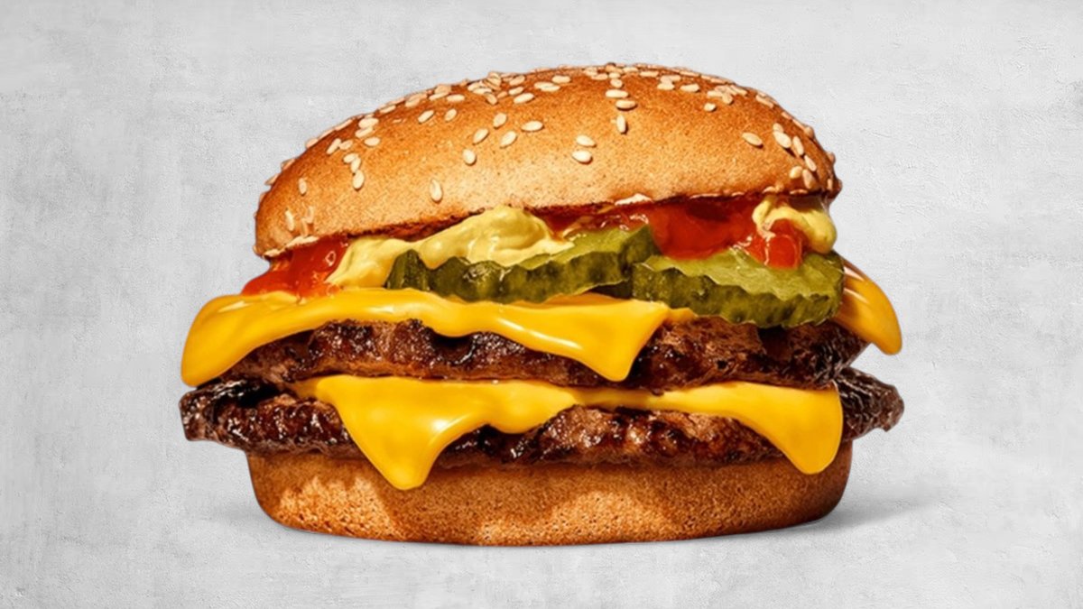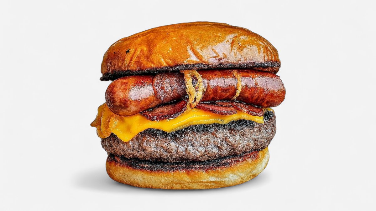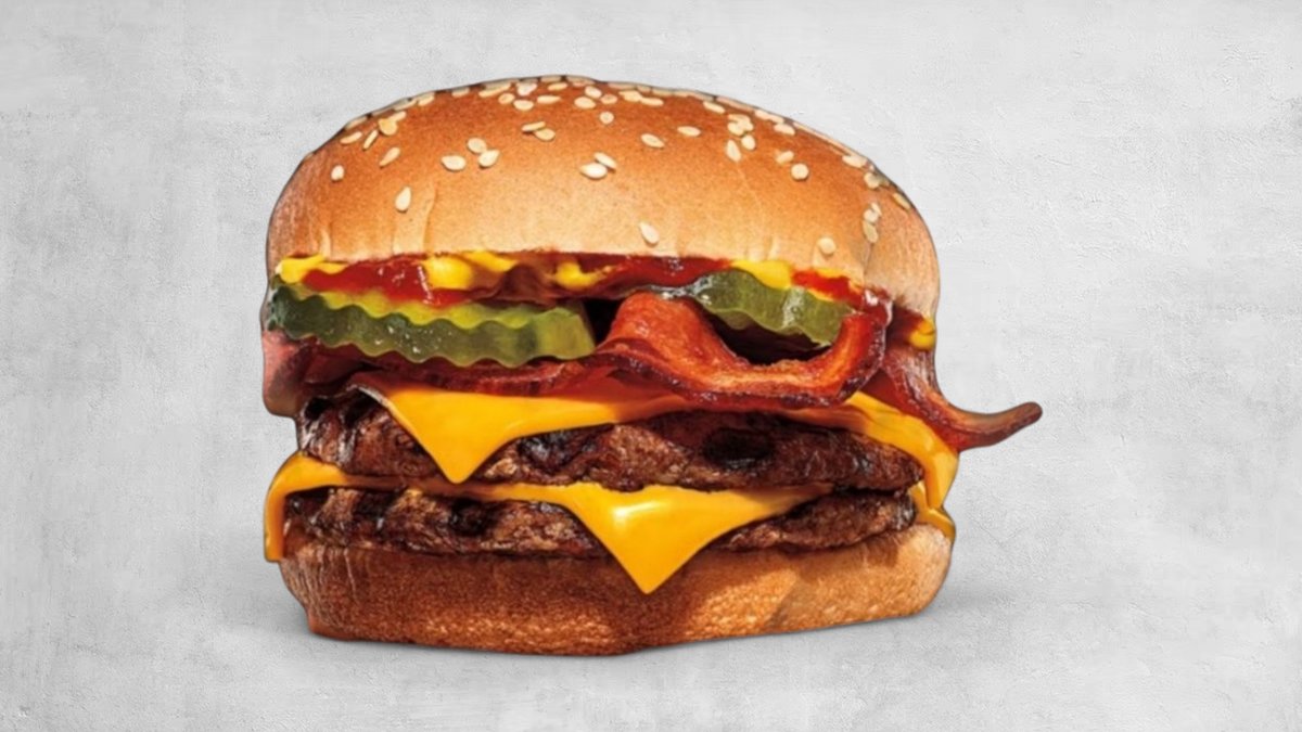 2 x juneće meso, 2 x čedar sir, kremasti majonez, bbq sos, slaninica, mekana zemička