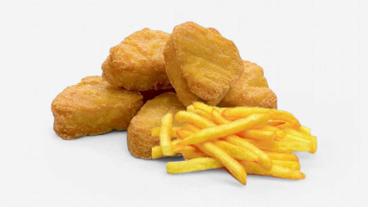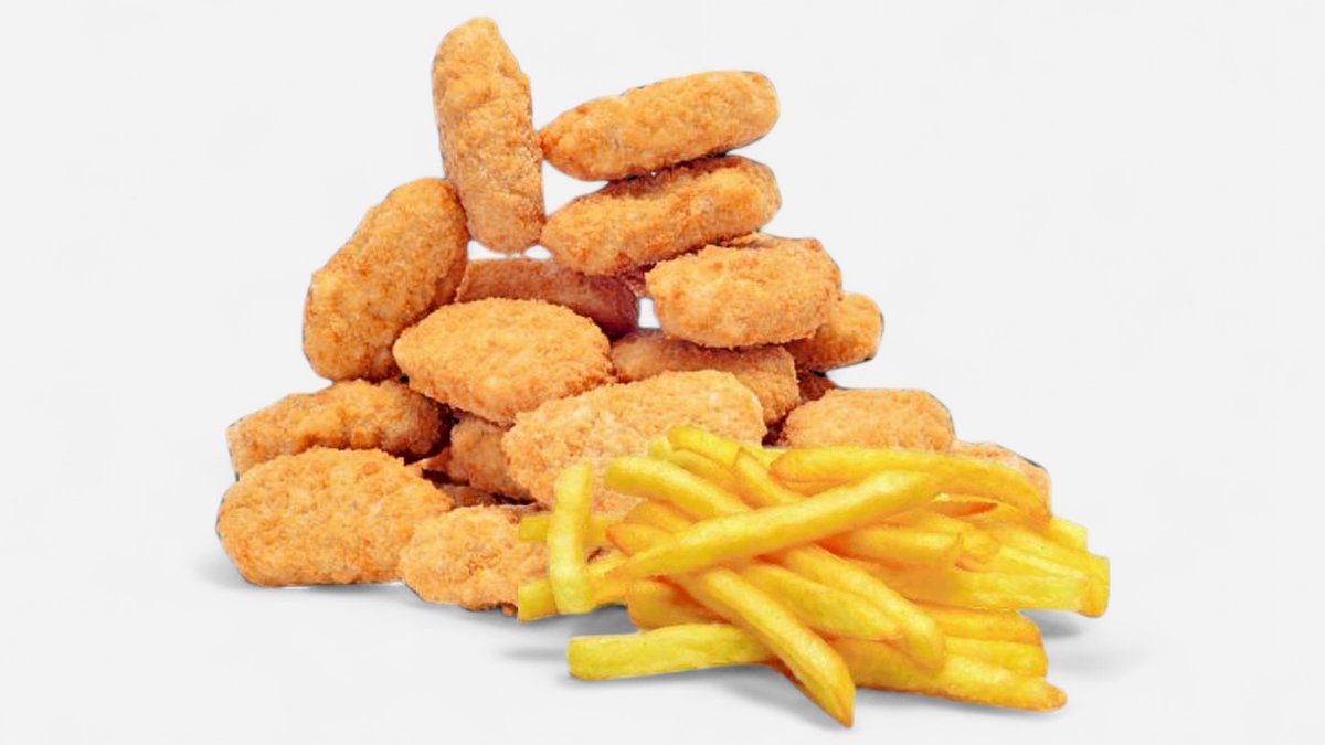 Vege Nuggets veliki box – 10 hrskavih vege nagetsa, porcija svežeg pomfrita i dva sosa po izboru. Idealna posna i vege kombinacija za brz i ukusan zalogaj. 🥰