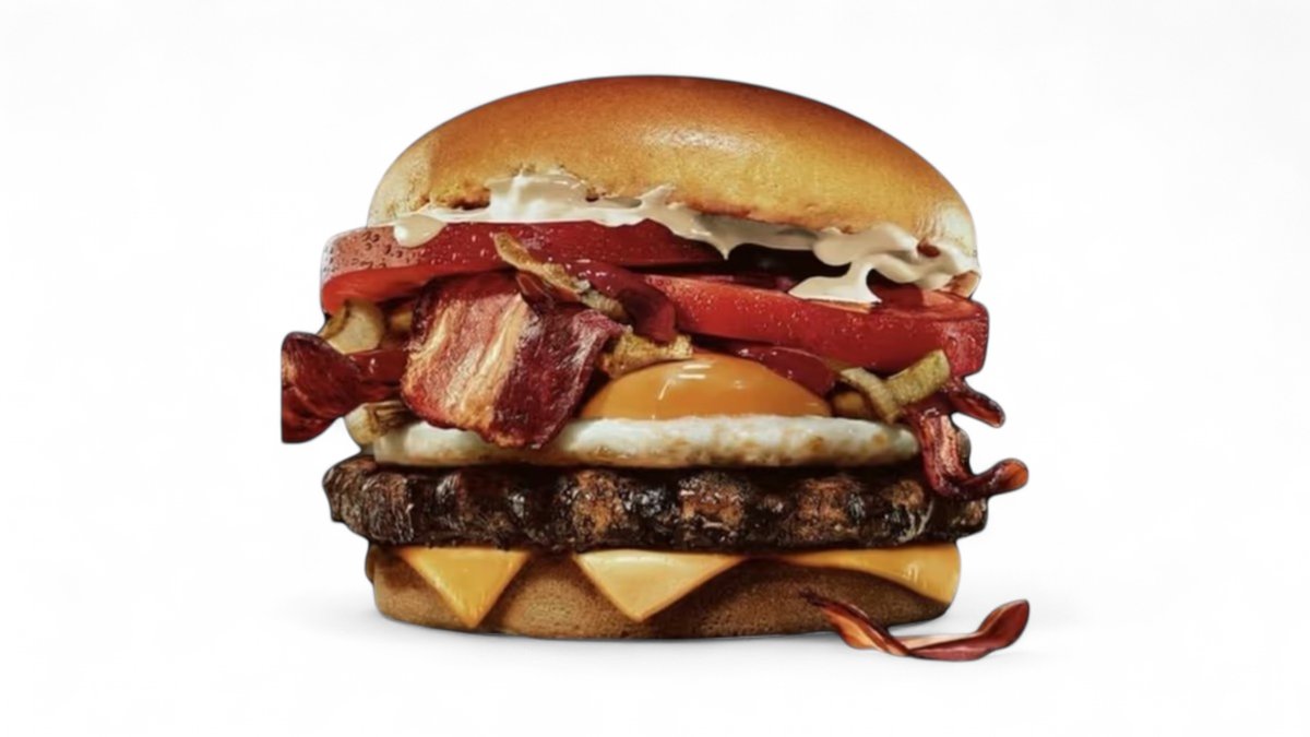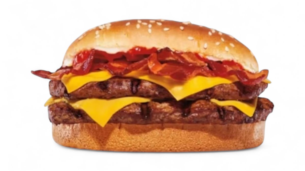 2 x juneće meso, 2 x cheddar sir, 2 x hrskava slaninica, topljena mozzarella, paradajz, kremasti majonez