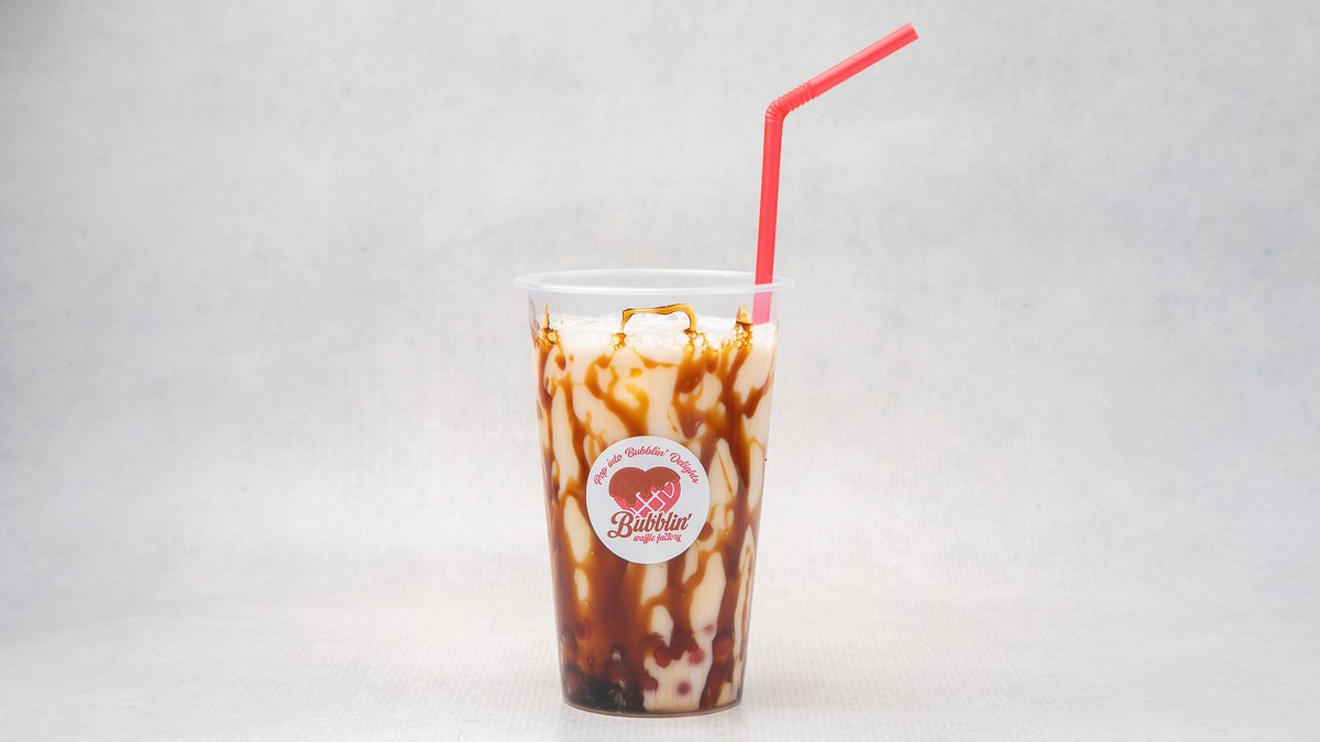 Milk, plazma powder, scoop of vanilla ice cream, chocolate sauce,ice