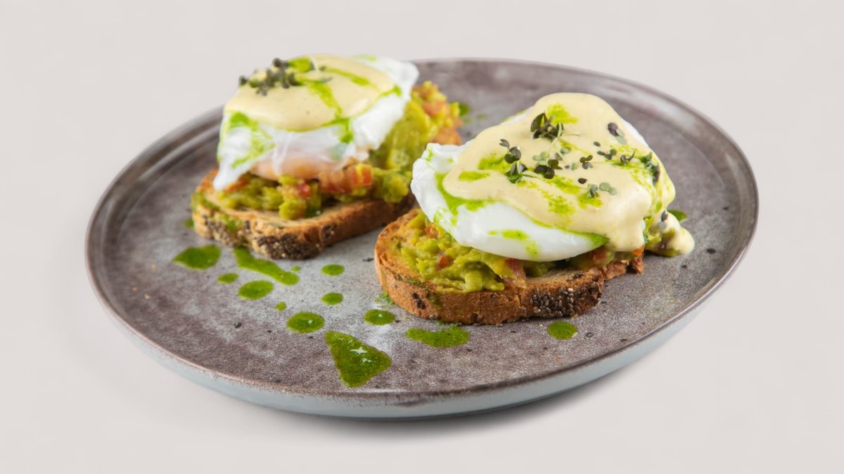 2 jaja, chia hleb, guacamole namaz, francuski dresing, P:21g , UH:21g , M:21g , 360kCal