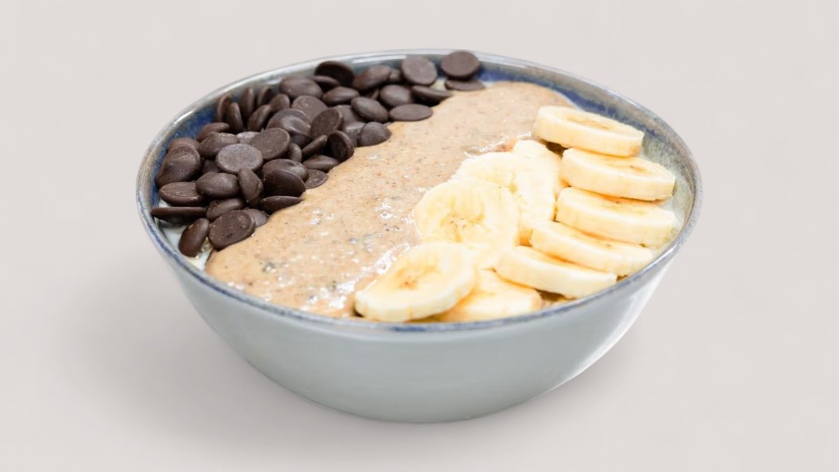Ovsene pahuljice, protein vanila, čokolada, banana, lešnik, urma, mleko, kokos, med.