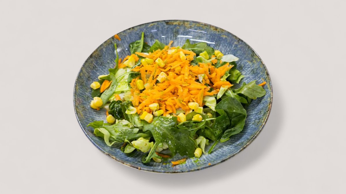Zelena salata, rukola, iceberg, baby spanac, kukuruz šećerac, šargarepa P:3g, Uh:11g, M:6g, 110kCal