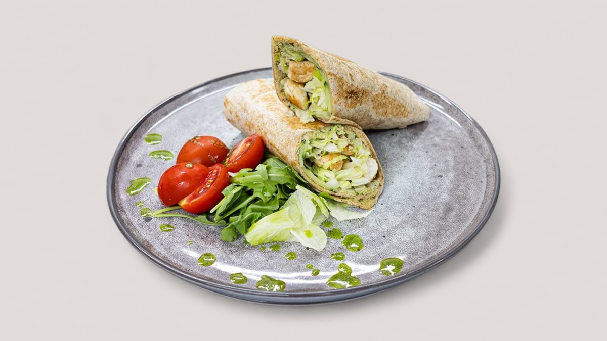 Pileći file, integralna tortilja, namaz od tikvica, tofu sir, svež krastavac, iceberg, mozzarella P:41g , Uh:38g , M:16g , 460kCal