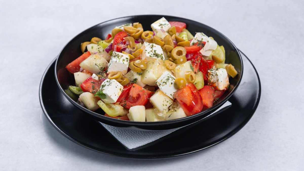 Paradajz, krastavac, crveni luk, feta, masline, origano
