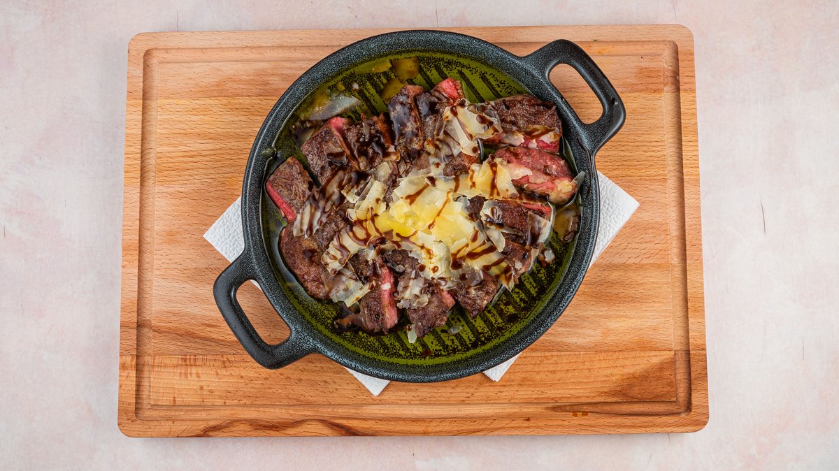 Ramstek tagliata u ulju sa acetom balzamikom i piliranim parmezanom