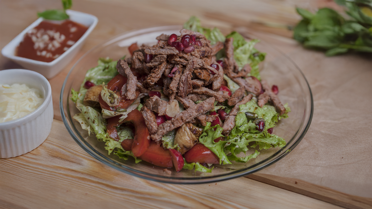Otkrijte našu novu Lahme salatu! Sadrži sveže sezonsko povrće, ukusne trake mariniranog ramsteka (120g) i balsamico preliv.