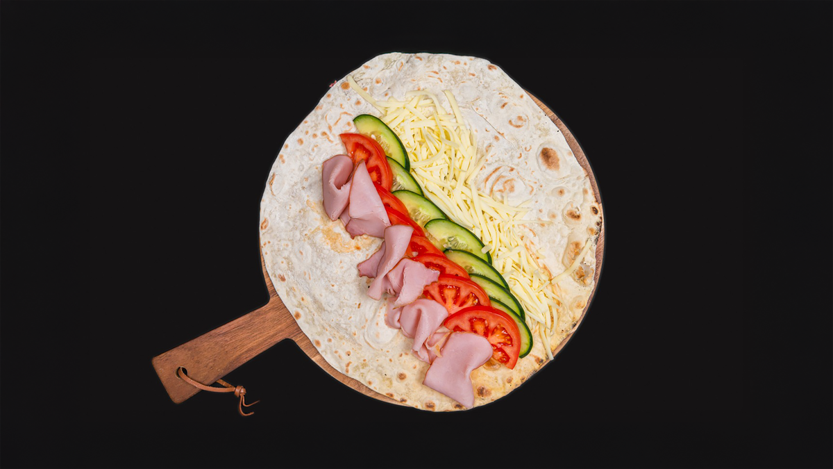 Omlet sa pečenicom, rukolom, paradajzom, i topljenim sirom u pita hlebu