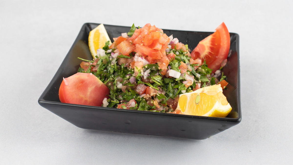 Libanski ćevap 120 g, humus, peršun, paradajz sos, pavlaka, sveže povrće, pita hleb
