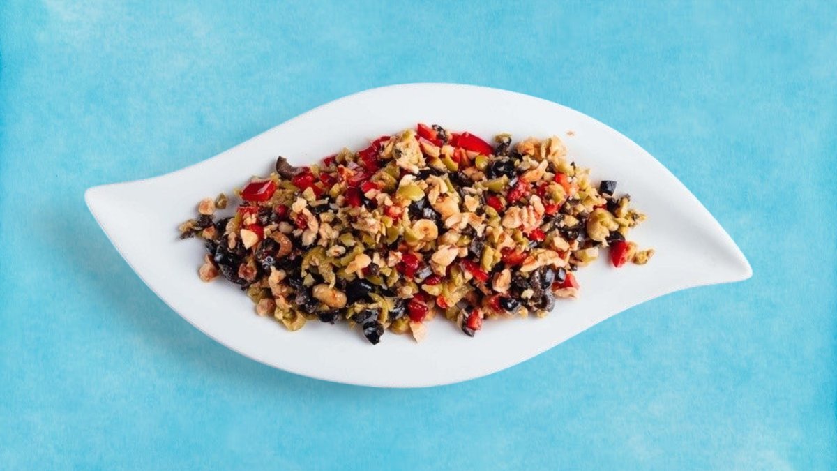 Salata od zelenih i crnih maslina , badema i tri vrste paprike