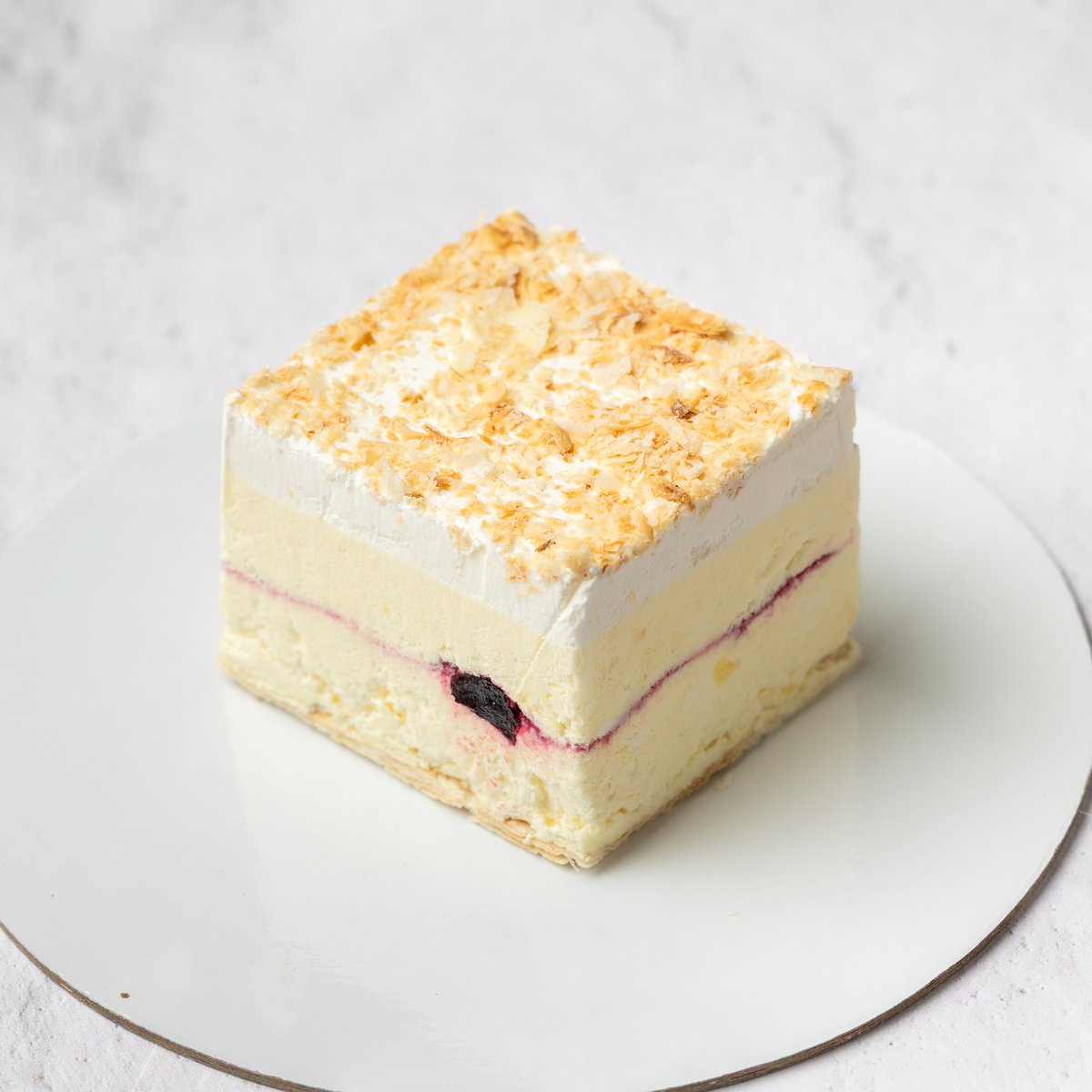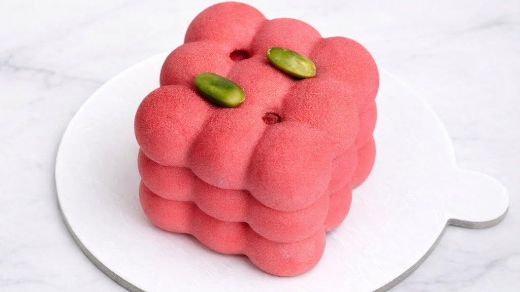 Osvežavajući mus od jagode i maskarponea sa kremastim insertom od pistaća, u modernoj bubble cube formi sa finim, krckavim slojem. Lagano, voćno i neodoljivo.