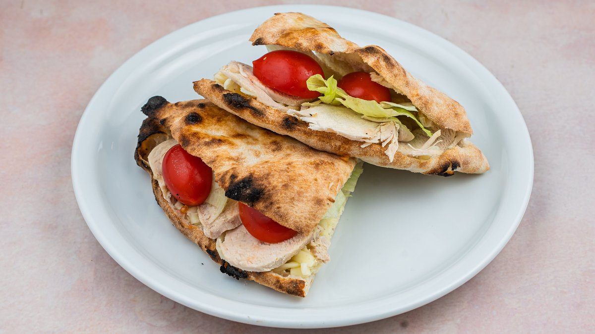rikota, mozzarella, pesto sos, piletina, paradajz, zelena salata, beli luk, maslinovo ulje, origano