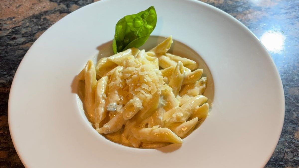 Neutralna pavlaka, mocarela,gorgonzola,dimljeni sir, grana padano, ruzmarin.