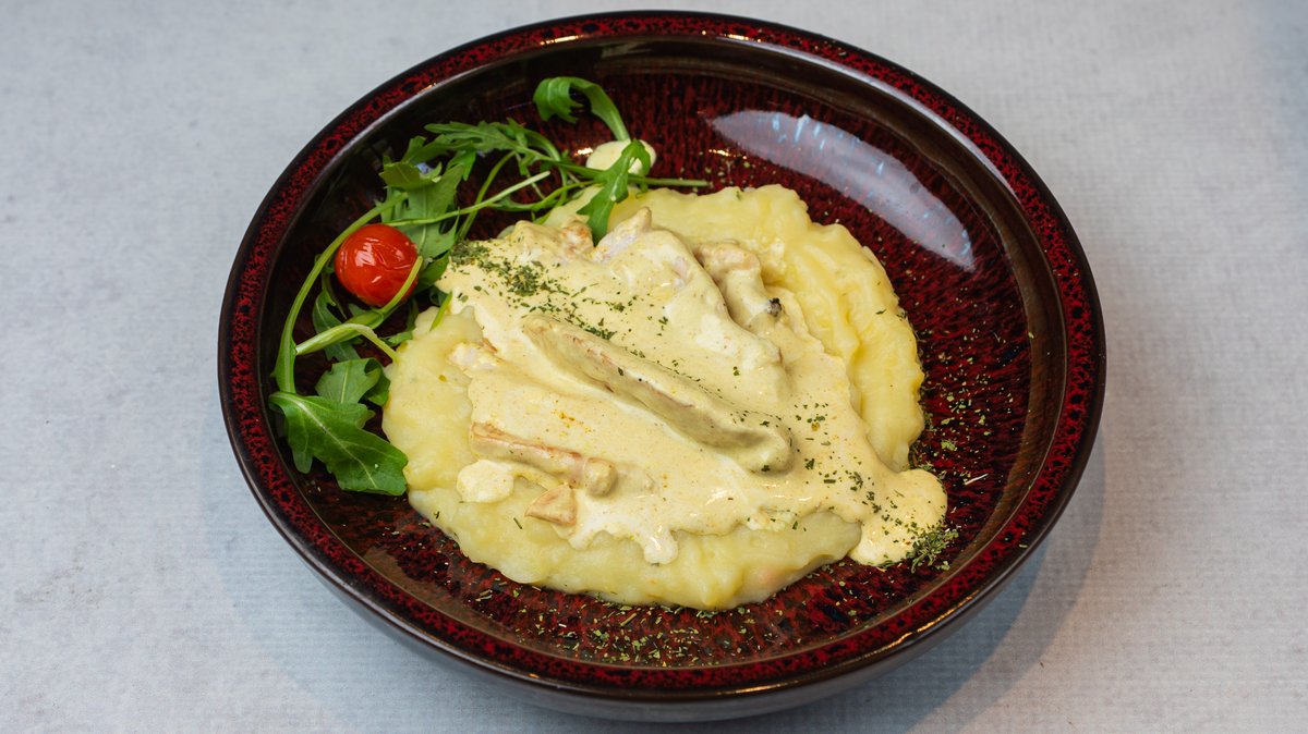 Pileći file u kari sosu + Pire krompir 400g