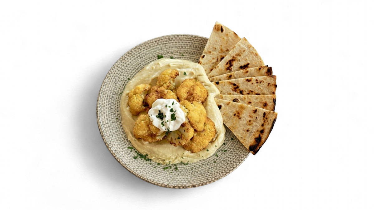Homemade humus,hrskavi karfiol,tahini,sos beli luk,libanska tortilja