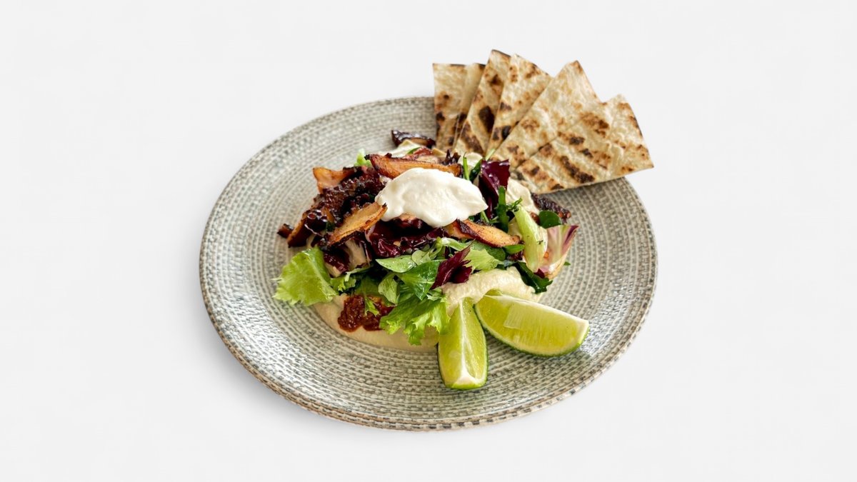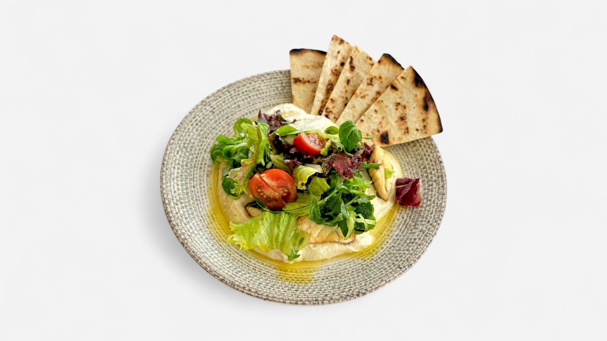Homemade humus,file brancina,zelena salata,cherry paradajz,beli luk sos,tahini,libanska tortilja