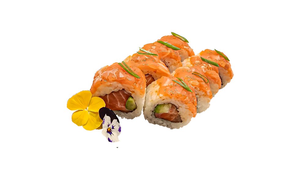 40 komada: - Hosomaki rolnica sa prženim lososom, krastavcom, avokadom i kapom od sira Filadelfija - Uramaki rolnica sa prženim lososom, wakame, tobiko i sirom Filadelfija. - Zapečena maki rolnica sa sa prženim lososom, sirom Filadelfija i kapom od spicy lososa i sira Mozzarella. - Zapečena maki rolnica sa prženim lososom, sirom Filadelfija, ispod pecene kore od sira Cheddar, susamom i Unagi sosom. - Tempura rolnica sa prženim lososom, zelenim salatom, sirom Filadelfija, crvenim tobiko, susamom i Unagi sosom