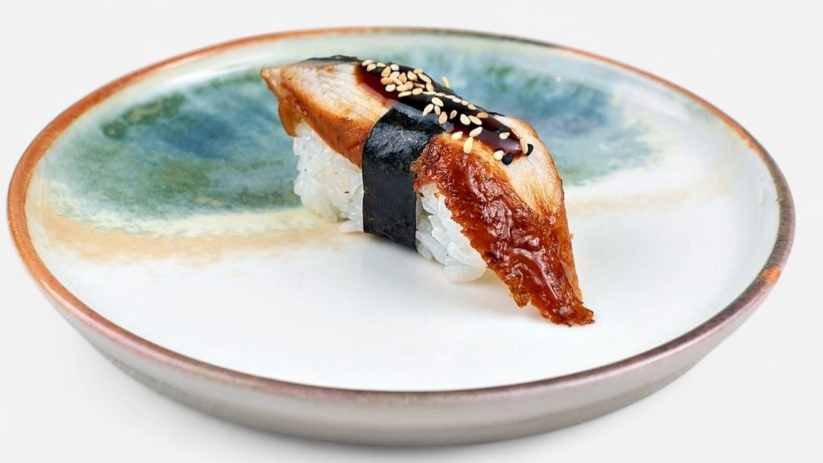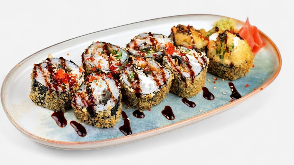 Jegulja, krem sir, krastavac, tobiko, susam, unagi sos