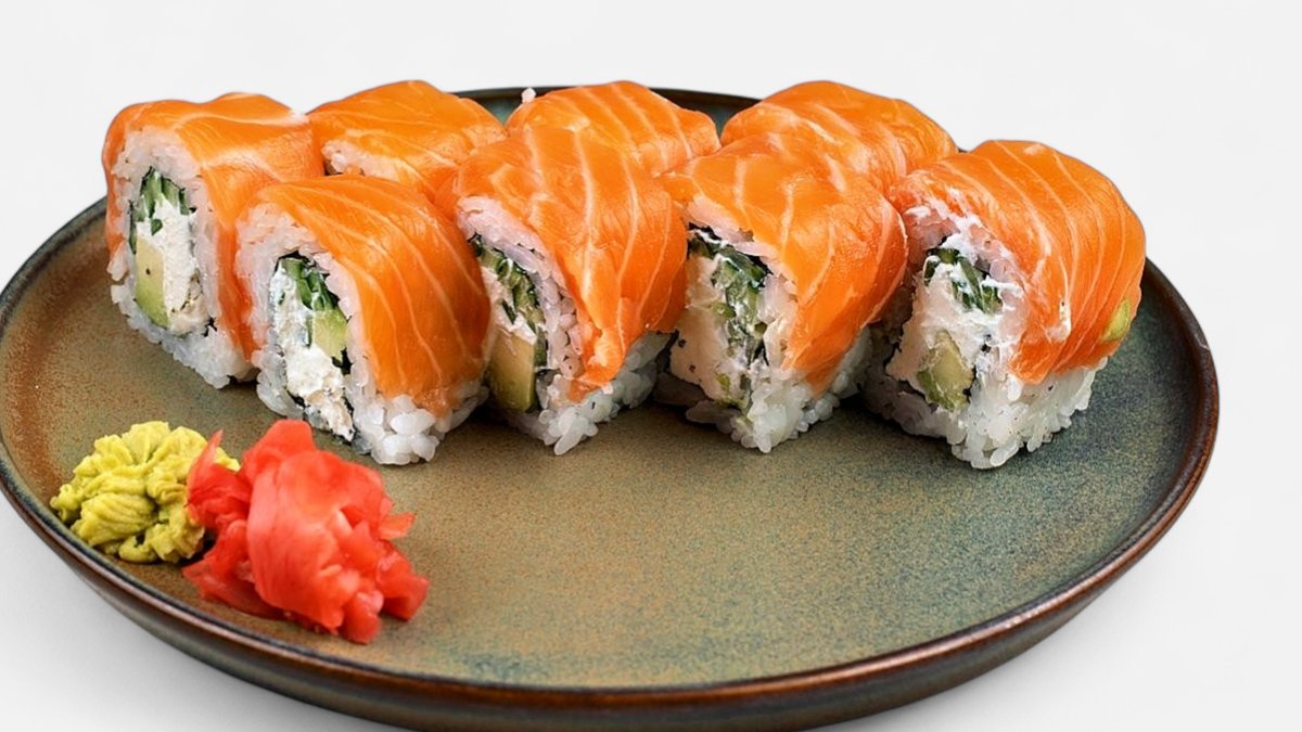 Losos, avokado, krastavac, krem sir Filadelfija. 8 komada