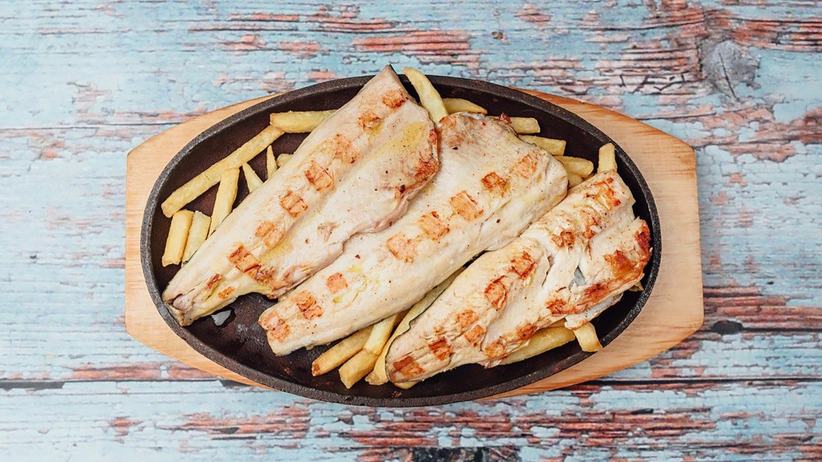 Pastrmka, pomfrit, pola somuna.Prilozi koje izaberete stavljamo u somun, nemamo mogućnosti da priloge pakujemo posebno.