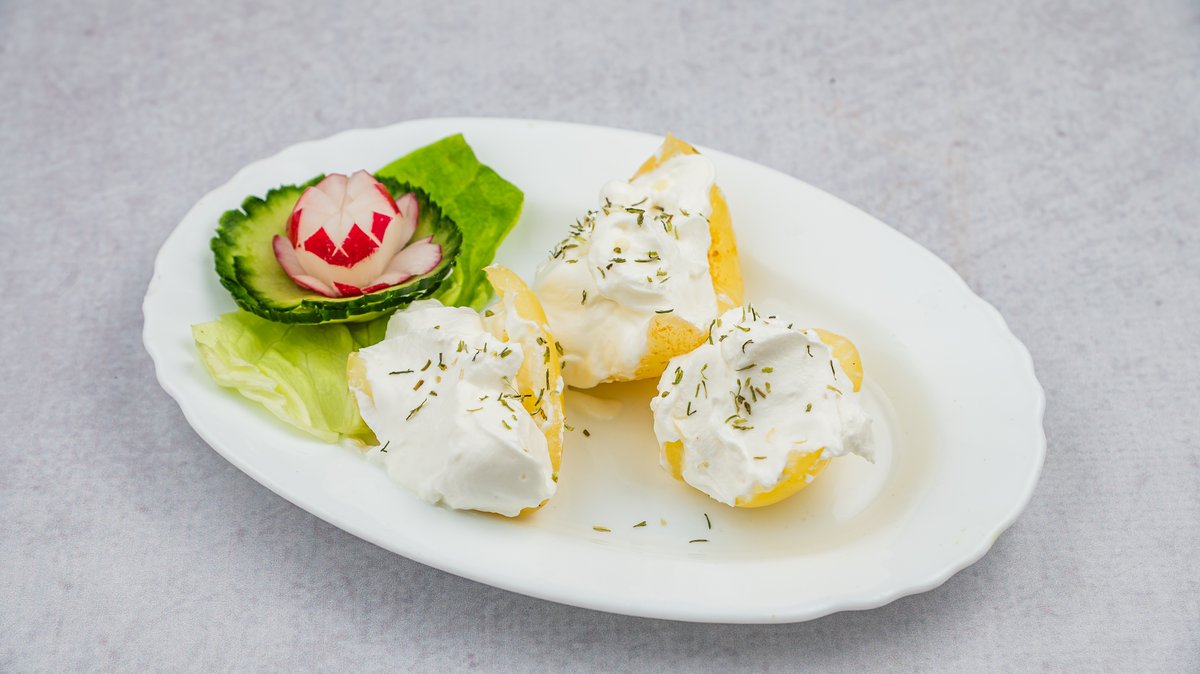 Domaća lepinja, čeno belog luka, kajmak 50gr, 1 jaje i pretop 70gr.