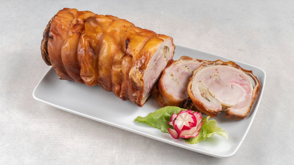 Obrok sa rolovanom prasetinom, čobanskim krompirom i salatom