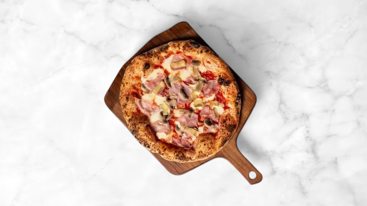 San marzano pelat | mocarela | cotto šunka | šampinjone | artičoke