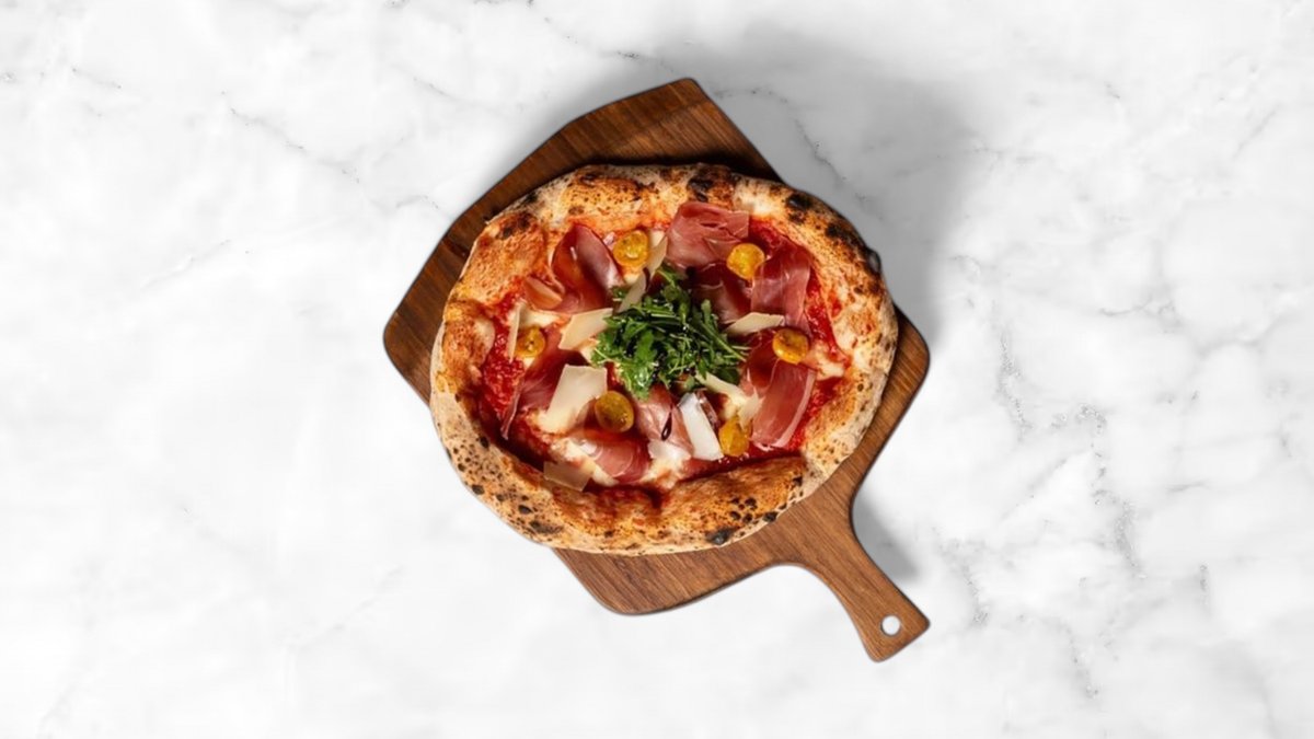 San marzano pelat | mocarela | prsuta | rukola | čeri | parmigiano reggiano | balsamiko krem