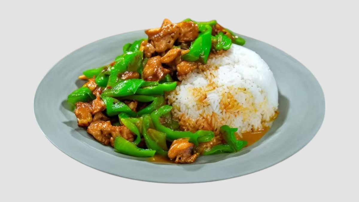 Pileće trake sa ukusom ribe, posuda za pirinač
