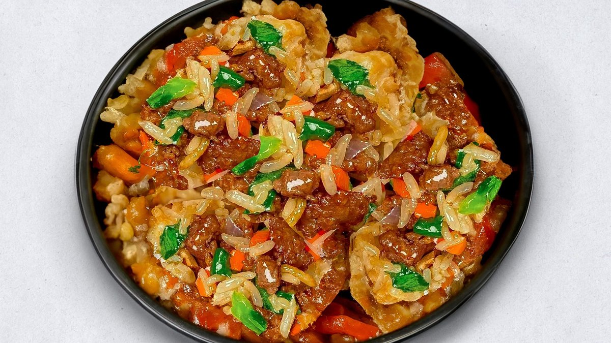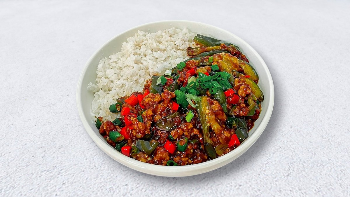Prženi rezanci sa mlevenim svinjskim mesom i patlidžanom