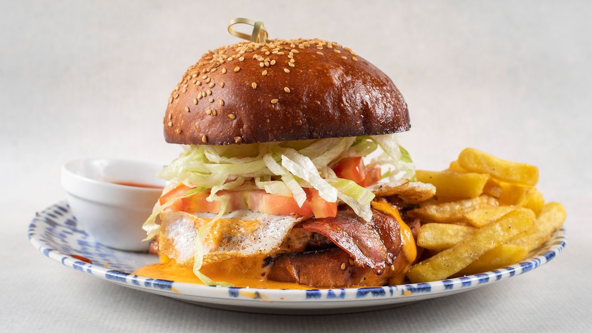 Juneće meso, pančeta, holandaise, paradajz, ajzberg, luk, jaje