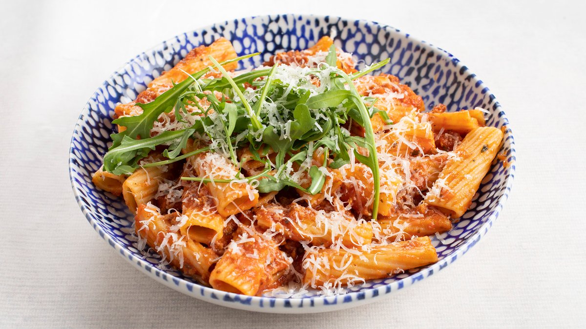 U paradajz sosu sa raguom od mlevenog mesa I parmezana