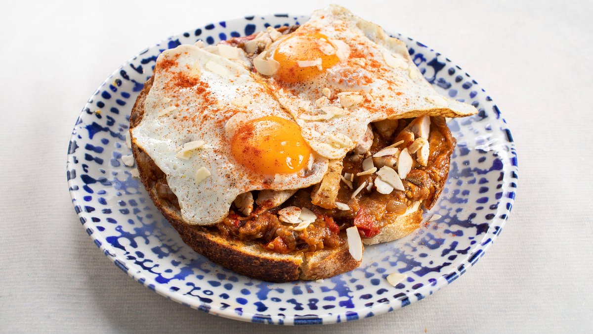 Dva jaja, kulen, paradajz salata, prženice, feta sir