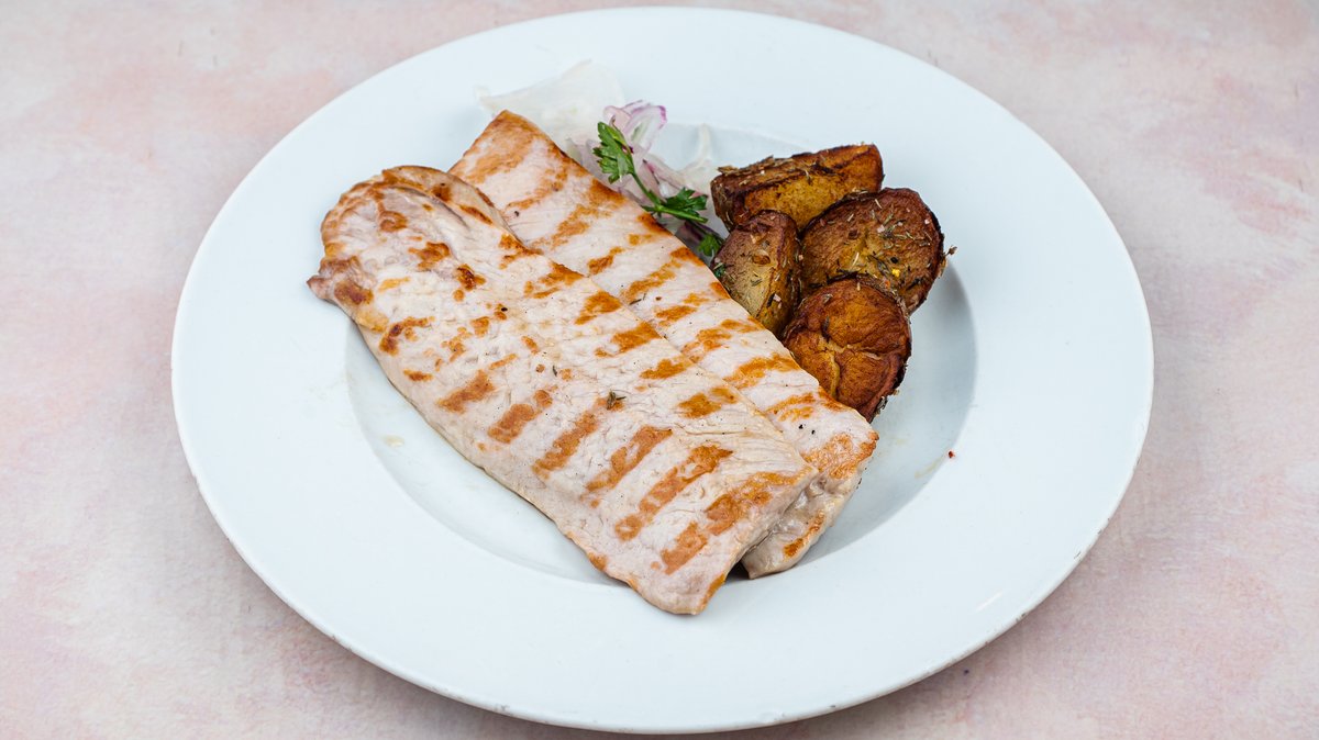 Odkošteno i ispečeno, posluženo sa pečenim krompirom