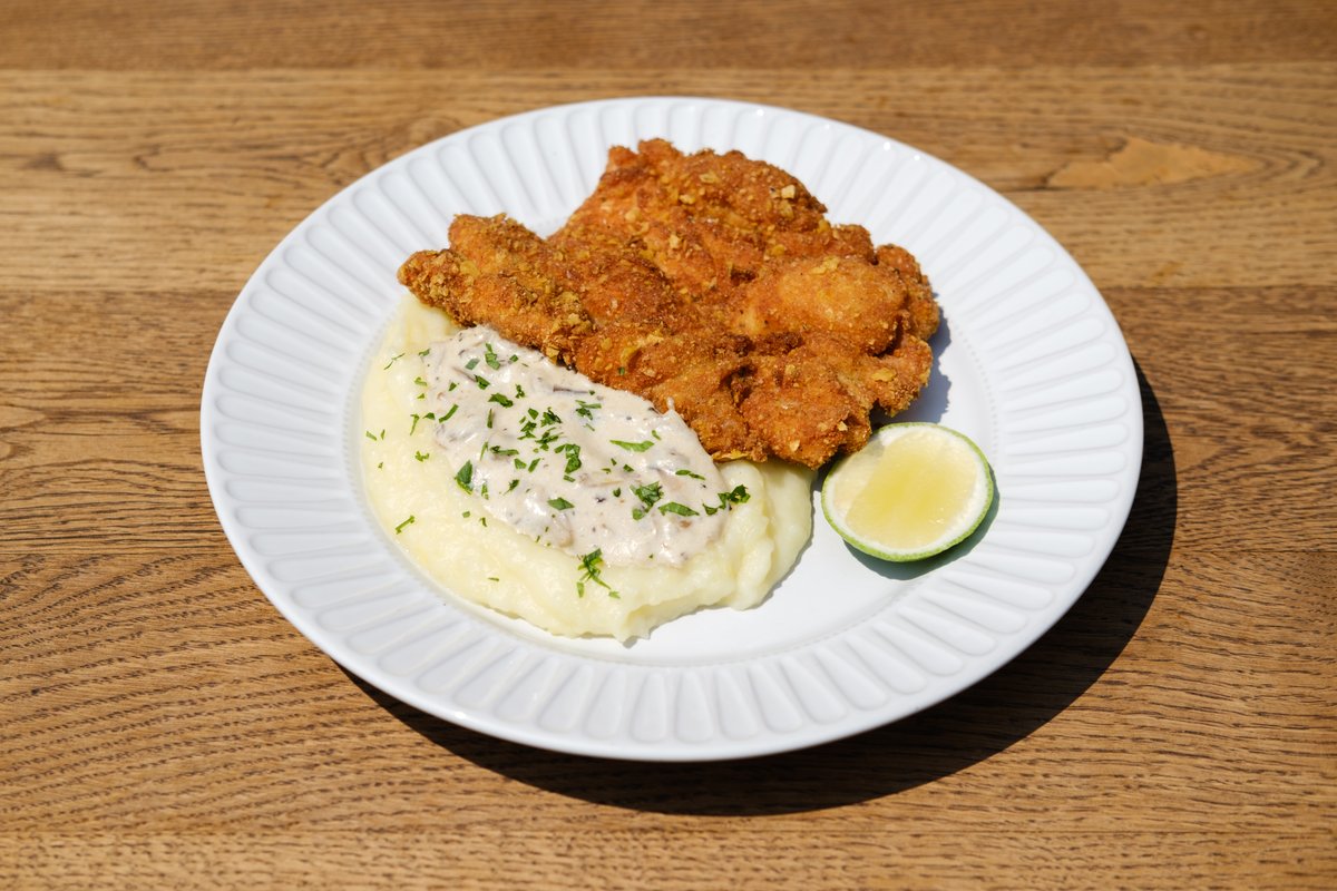 Schnitzel with Mashed Potatoes & Mushrooms