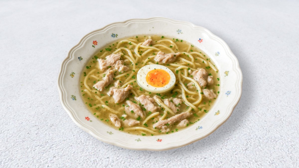 A mug of rich chicken broth that will help with a hangover, during illness, or strengthen the immune system in inclement weather