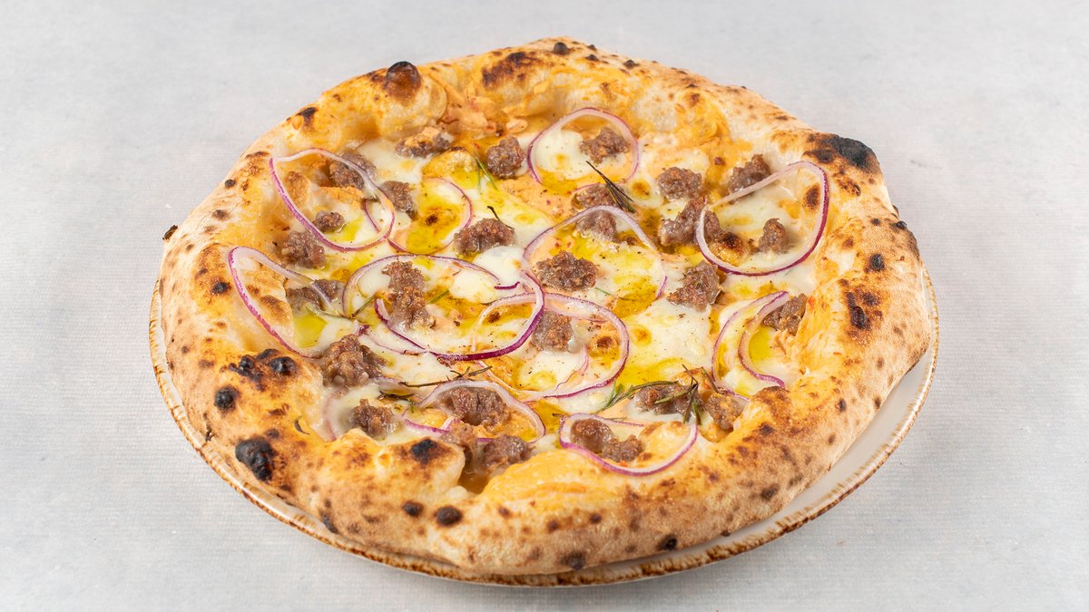 Grana Padano, Parmigiano Reggiano od 30 meseci, mozzarella, crveni luk, ruzmarin, mrvljeni pistać, maslinovo ulje, so Maldon, biber