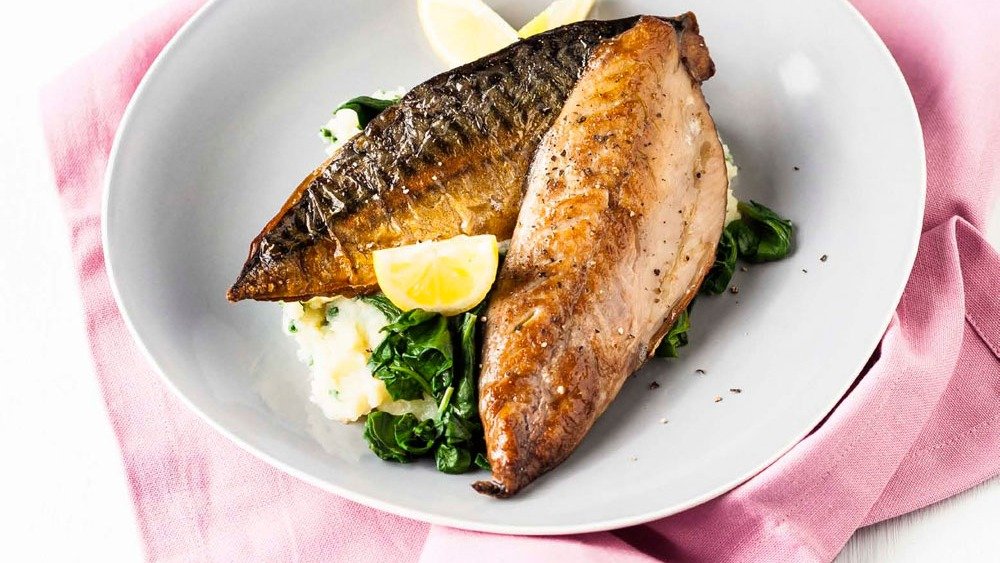 Po sadržaju polinezasićenih masnih kiselina, jedna od najzdravijih riba. Ukupna težina porcije 570 gr (riba & prilozi). Fileti skuše❤️- 270 grama. Plus tri priloga: blitva – krompir, grilovano povrće i treći prilog koji se menja periodično.