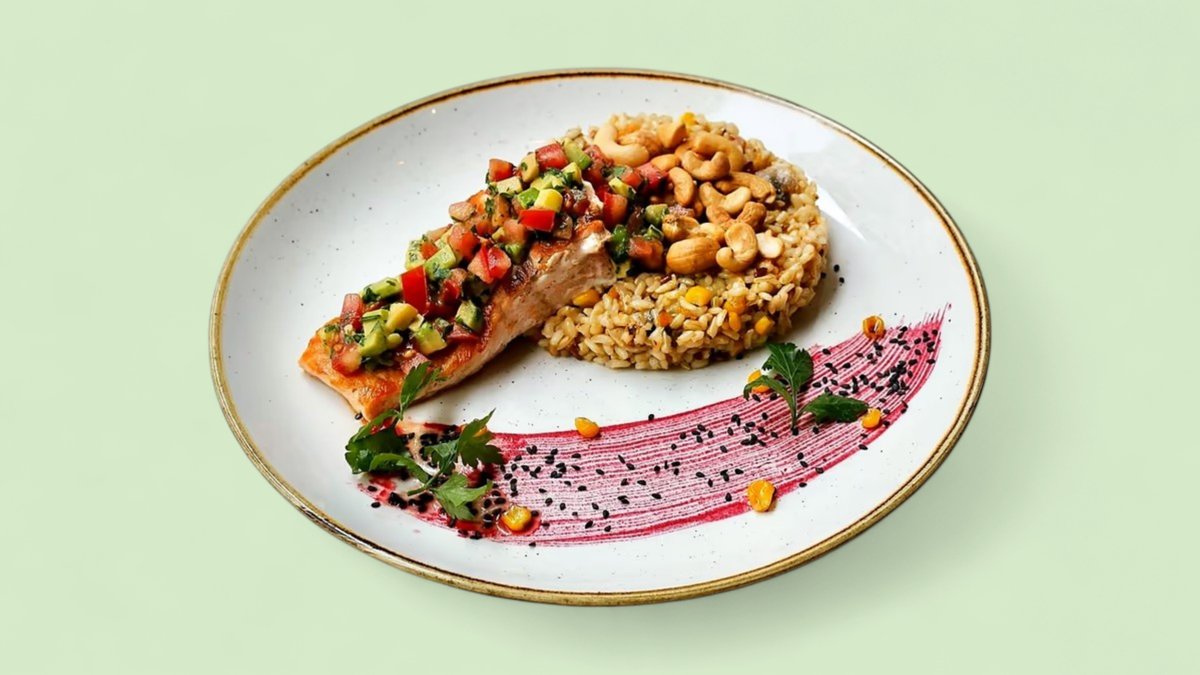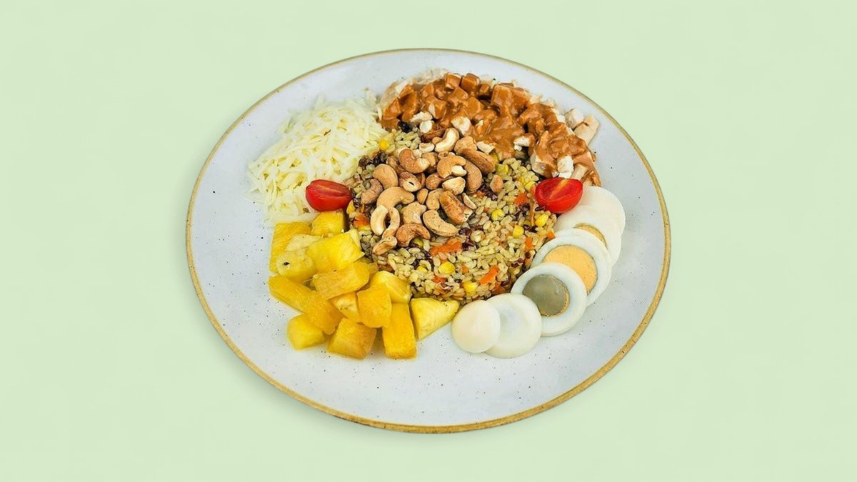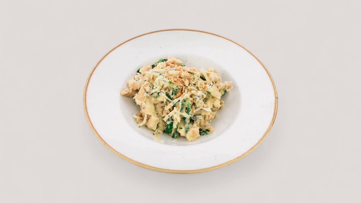 Pileći file, indijski orah, leblebije, baby spanać, puter, parmezan (765 kcal, 67g ugh , 34g m, 48g p)