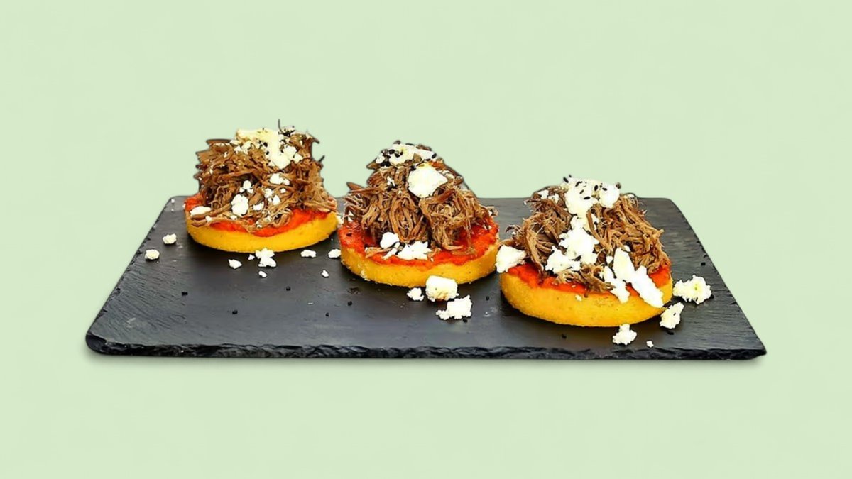 Tortilja od celog zrna, cepkano meso, ajsberg salata, mocarela, namaz od paprike, čimičuri sos, kiseli krstavčići 676 kcal, 45g ugh, 32g m, 43g p