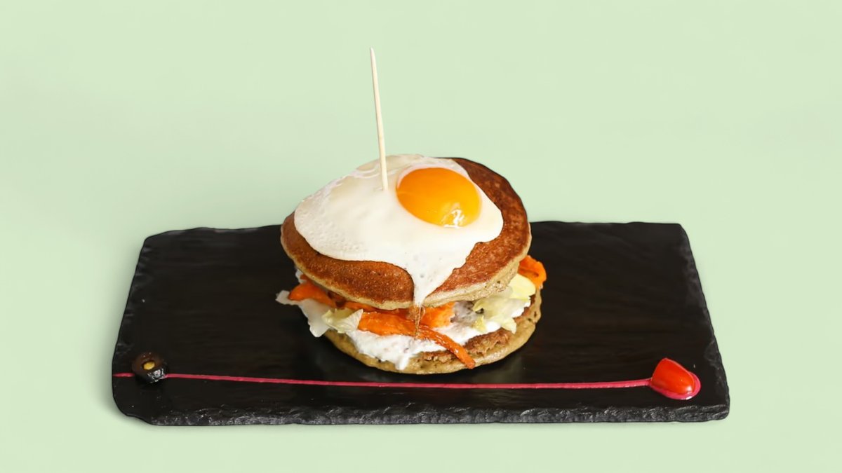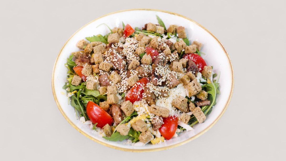 Juneći but, jaje, ela sir, ovsene pahuljice, golica, semenke suncokreta, susam, panćeta, ajzberg salata, paradajz, crveni luk, majonez od orašastih plodova (702 kcal, 28g ugh, 39g m, 59g p/ 808 kcal, 28g ugh, 52g m, 58g p)