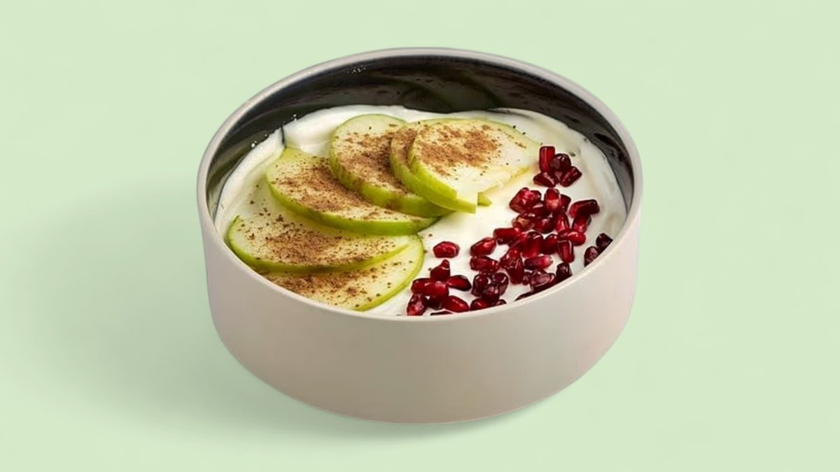 Sveže sezonsko voće, whey protein vanila, grčki jogurt, lešnik (482 kcal, 43g ugh, 23g m, 26g p)
