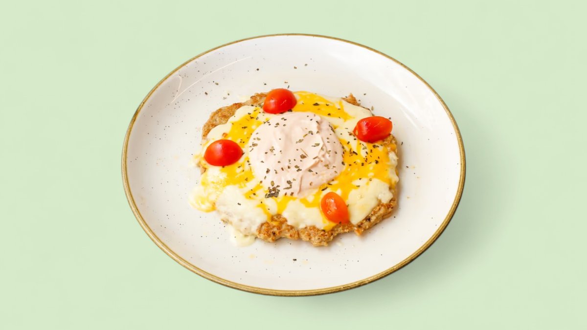 Jaja, baby spanać, pančeta, mocarela, parmezan, čeri paradajz (391 kcal, 4g ugh, 28g m, 31g p)
