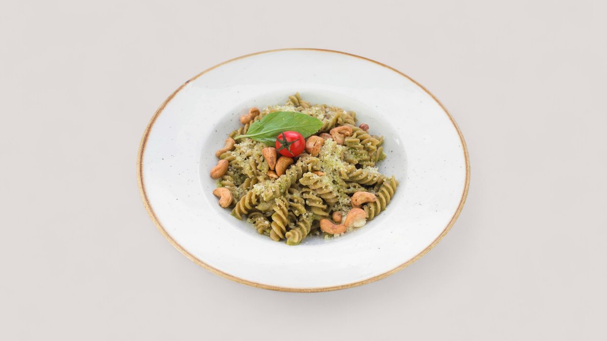Indijski orah, parmezan, đumbir, limunov sok, bosiljak, peršun, beli luk, maslinovo ulje (686 kcal, 63g ugh, 35g m, 30g p)