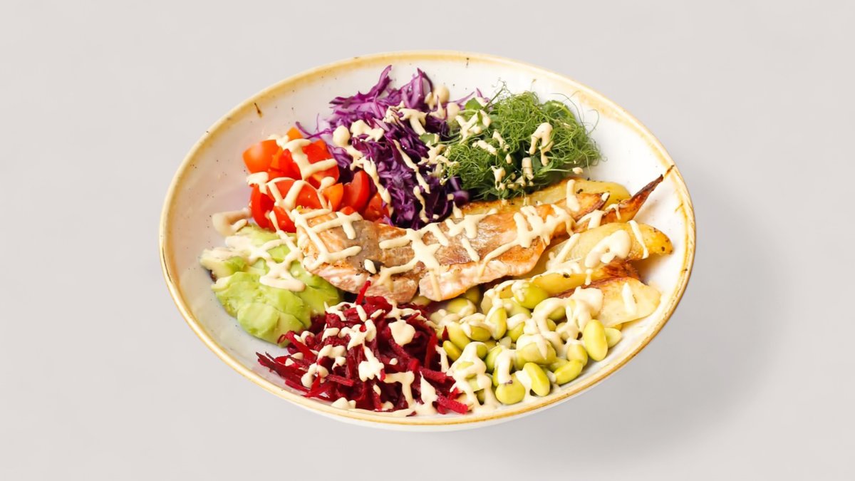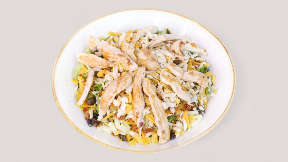 Pileći file, mlečni namaz, dižon senf, paprika, baby spanać, crveni luk, pančeta (584 kcal, 44g ugh , 25g m, 44g p)