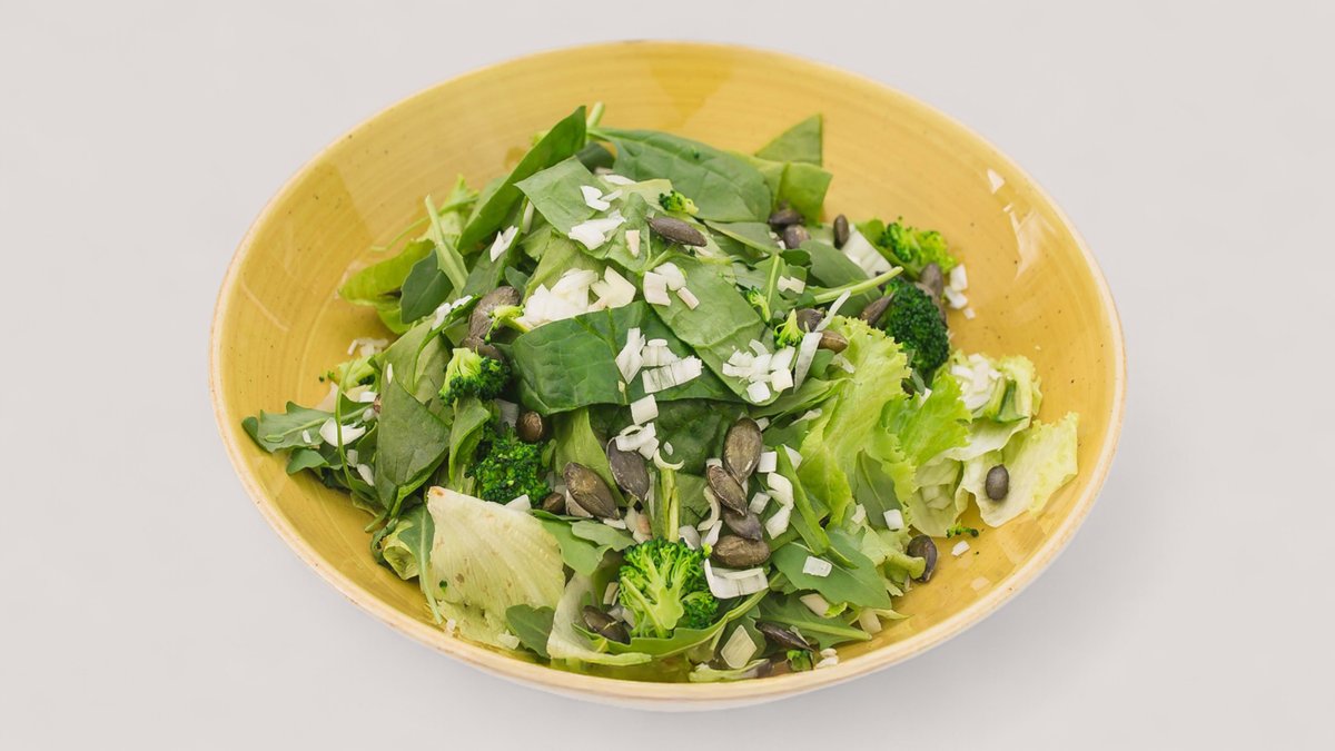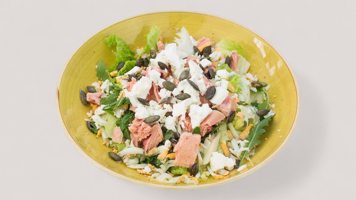 Pileći file, namaz od semenki bundeve, tofu sir, parmezan, ajzberg salata (548 kcal, 42g ugh, 23g m, 43g p)
